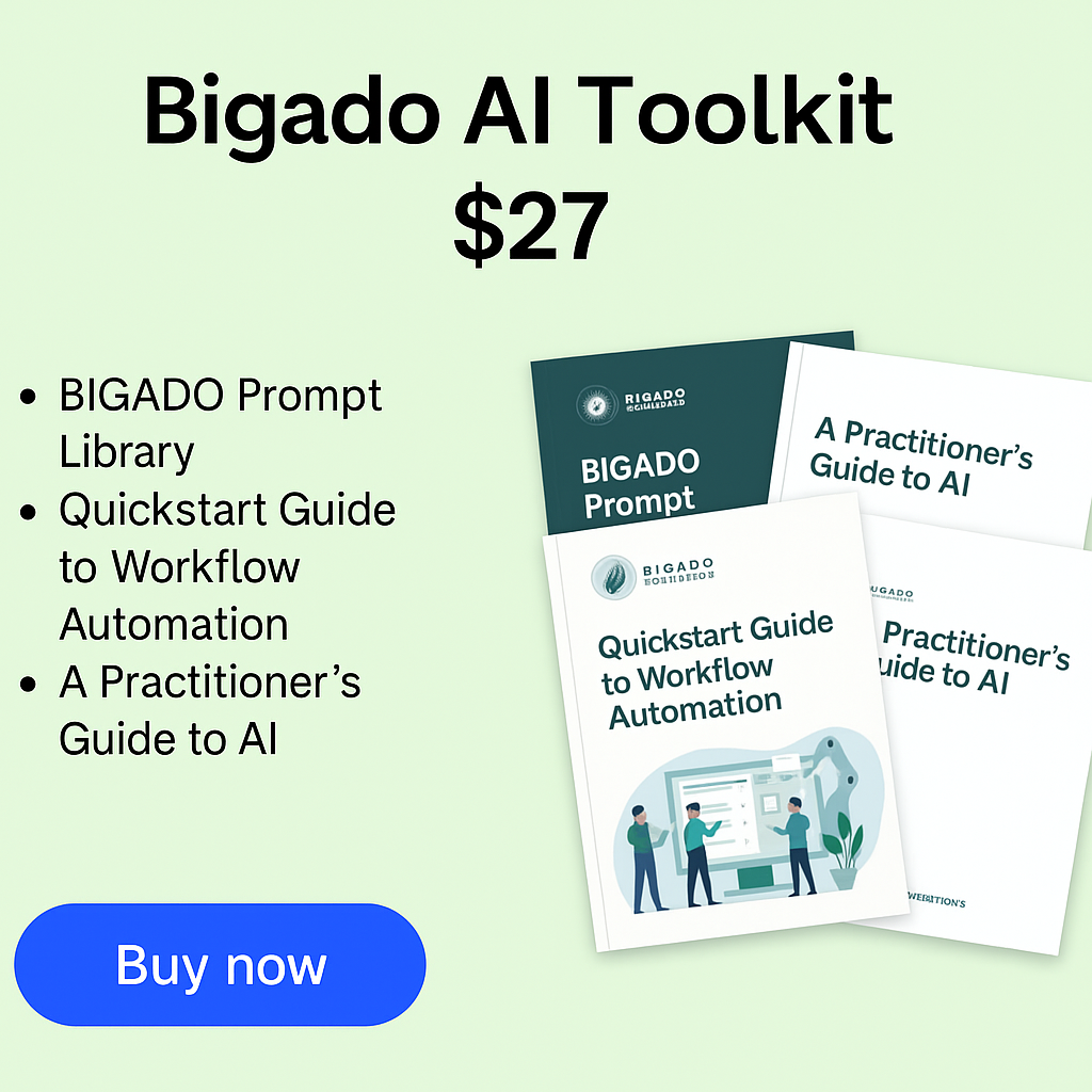 The Bigado AI Toolkit is your shortcut to understanding and using AI like a pro — with ready-to-use tools, prompts, and guides.